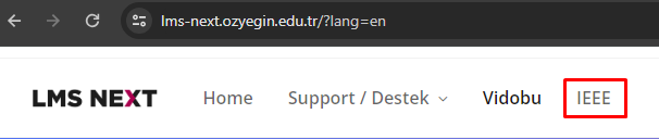 To use your personal account with an "@ozyegin.edu.tr" or "@ozu.edu.tr" extension, you must connect from outside the campus network. Follow these steps to log in: Open the LMS-Next page and click on the IEEE section.