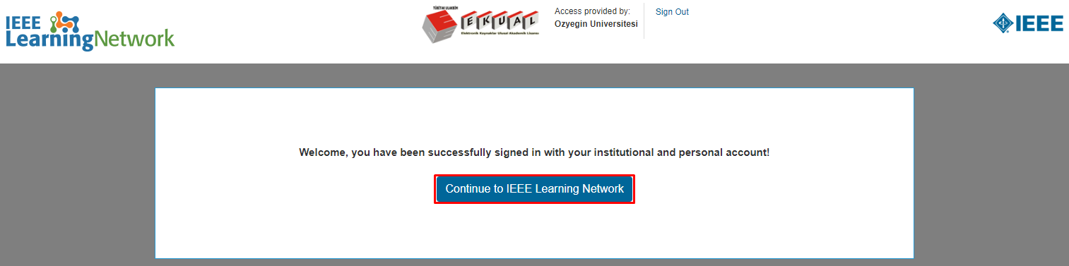 If you see a message stating, “Access provided by Ozyegin University,” you are connected to the campus network. Switch to another network and refresh the page. Click on "Sign in" in the top-right corner.