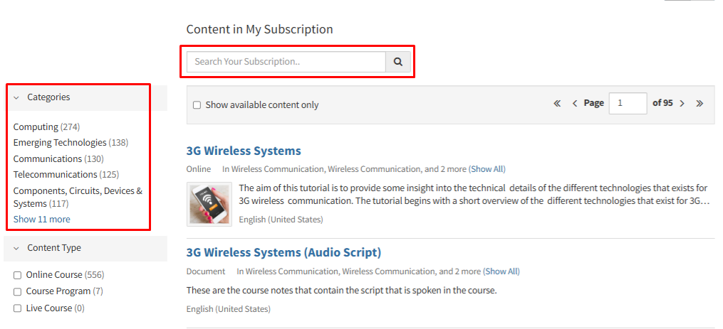 By clicking on "Search Subscription" you can access all trainings under the subscription for free.